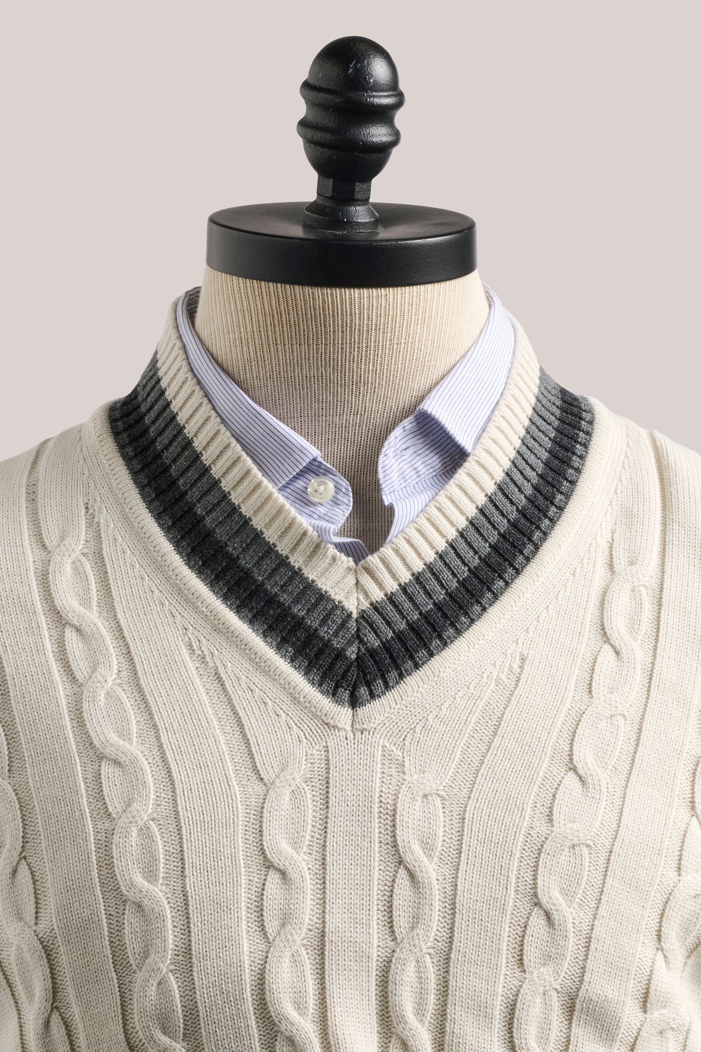 The Hughes Cricket Knit is an enduring classic, a prep icon. Even more nostalgic for those of us who grew up running around the pitch in one; ours is knitted from Italian cotton that's both lightweight and breathable. An elegant addition to almost any outfit, it layers well over polos or shirts.