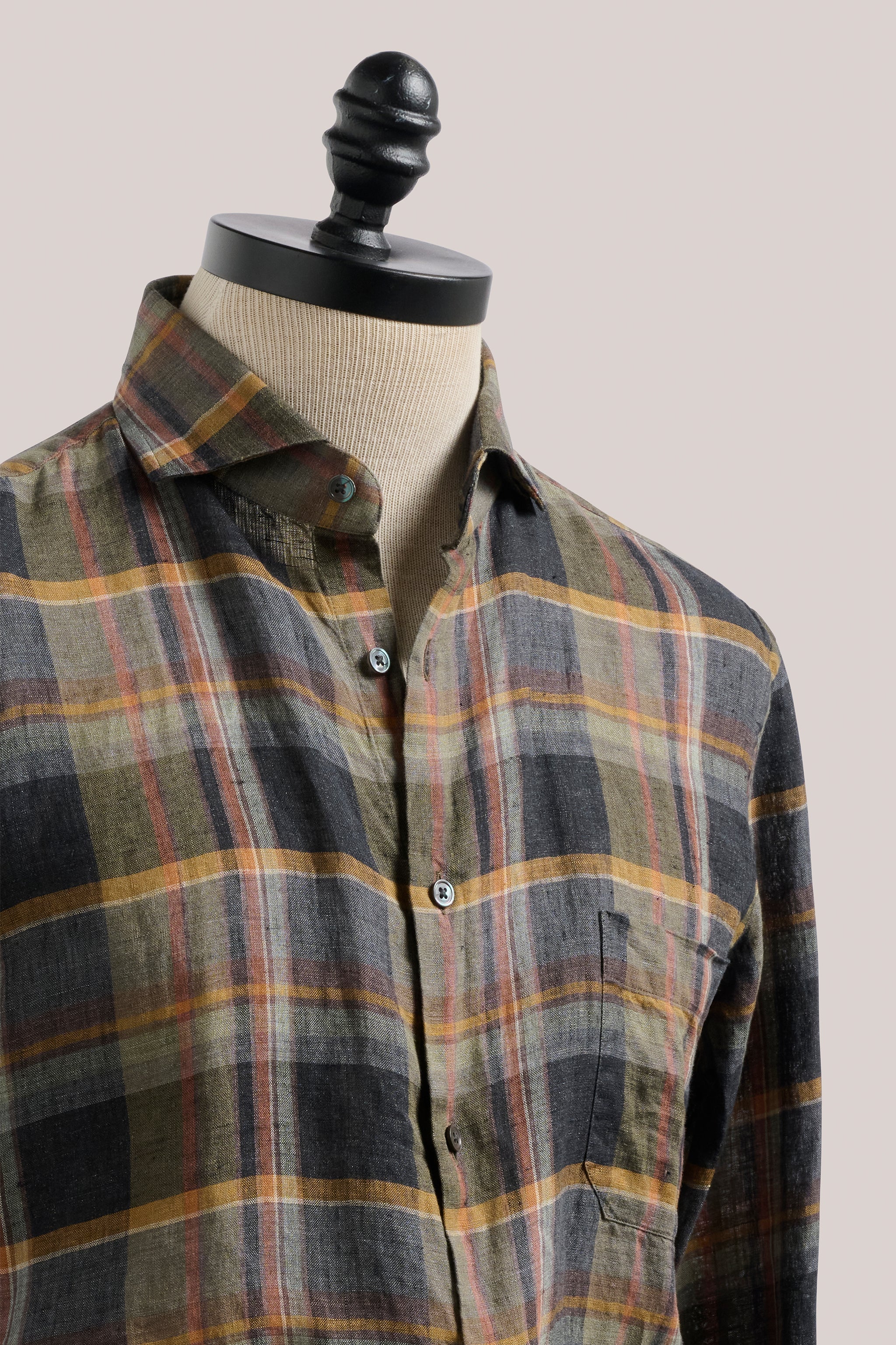 Our new Limited edition Bronte check shirt presents a refined, relaxed option for weekends away and relaxed office days. They are made from airy Italian linen, tailored with a spread collar, and then garment-dyed in soft shades to enhance the fabric’s natural softness. They will become a firm favourite all summer long.