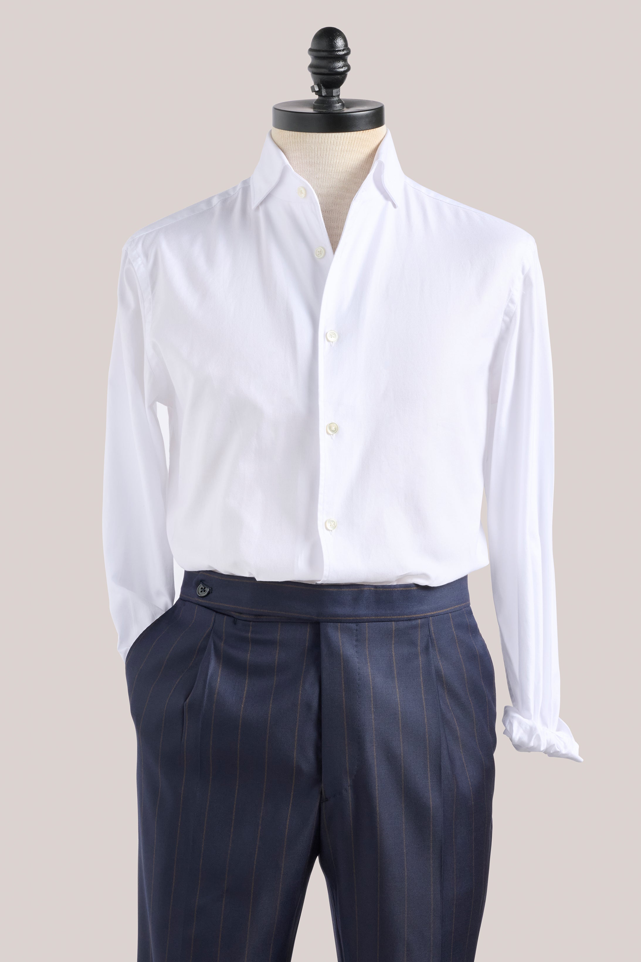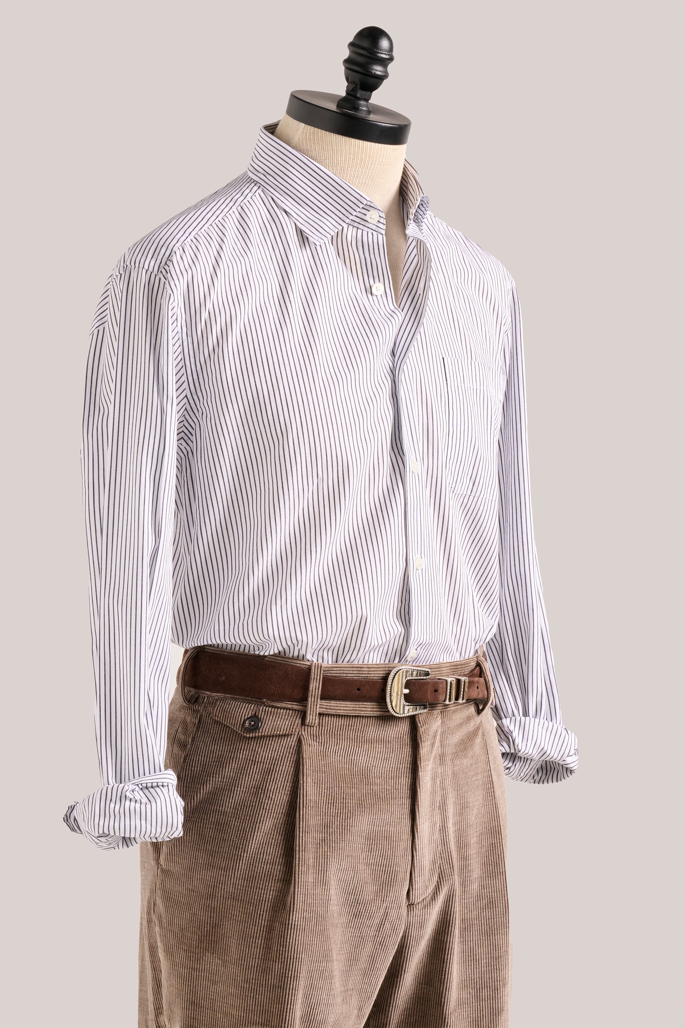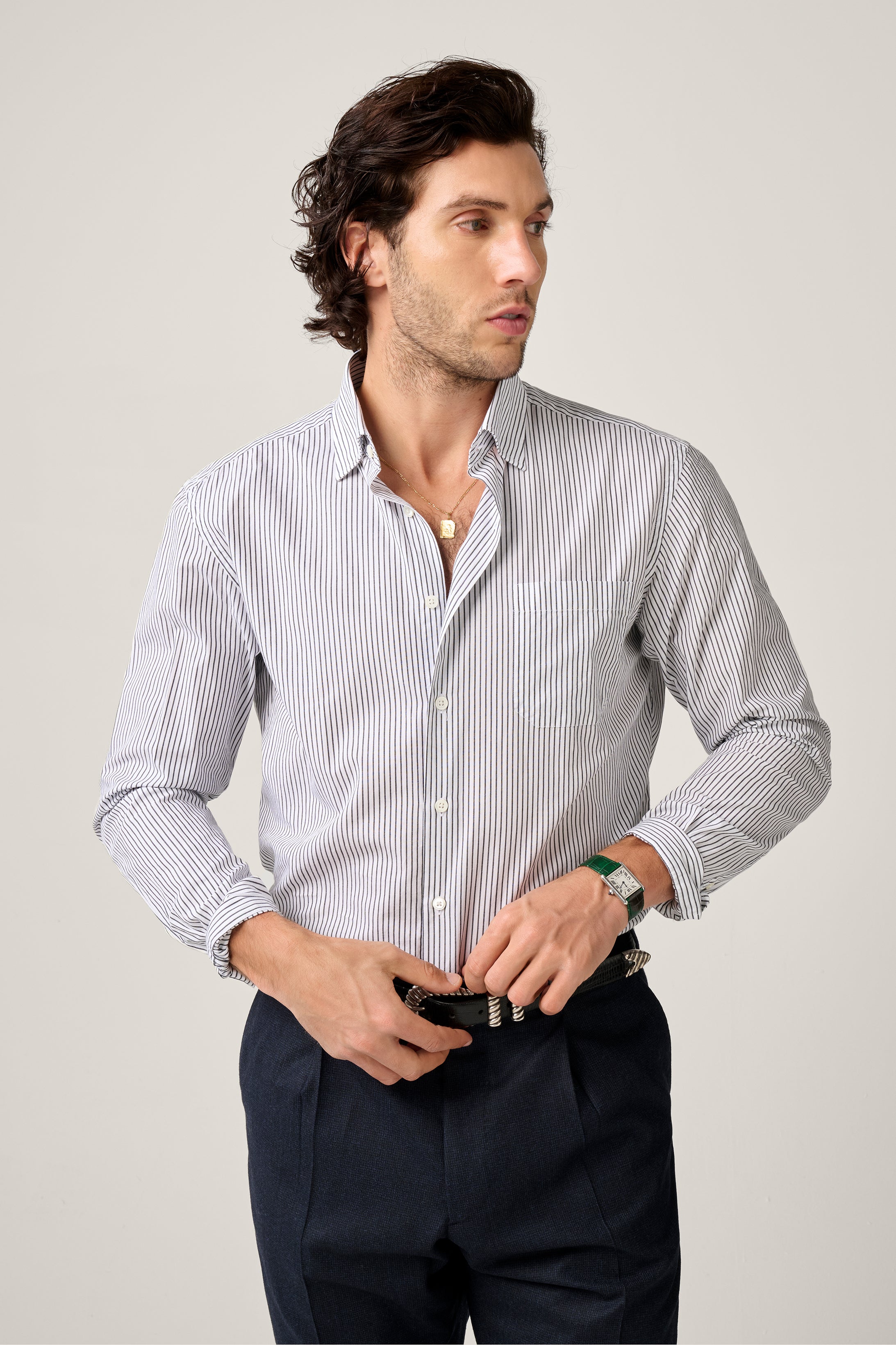 Italian Banker Stripe Work Shirt - Cotton - Blue And White Stripe