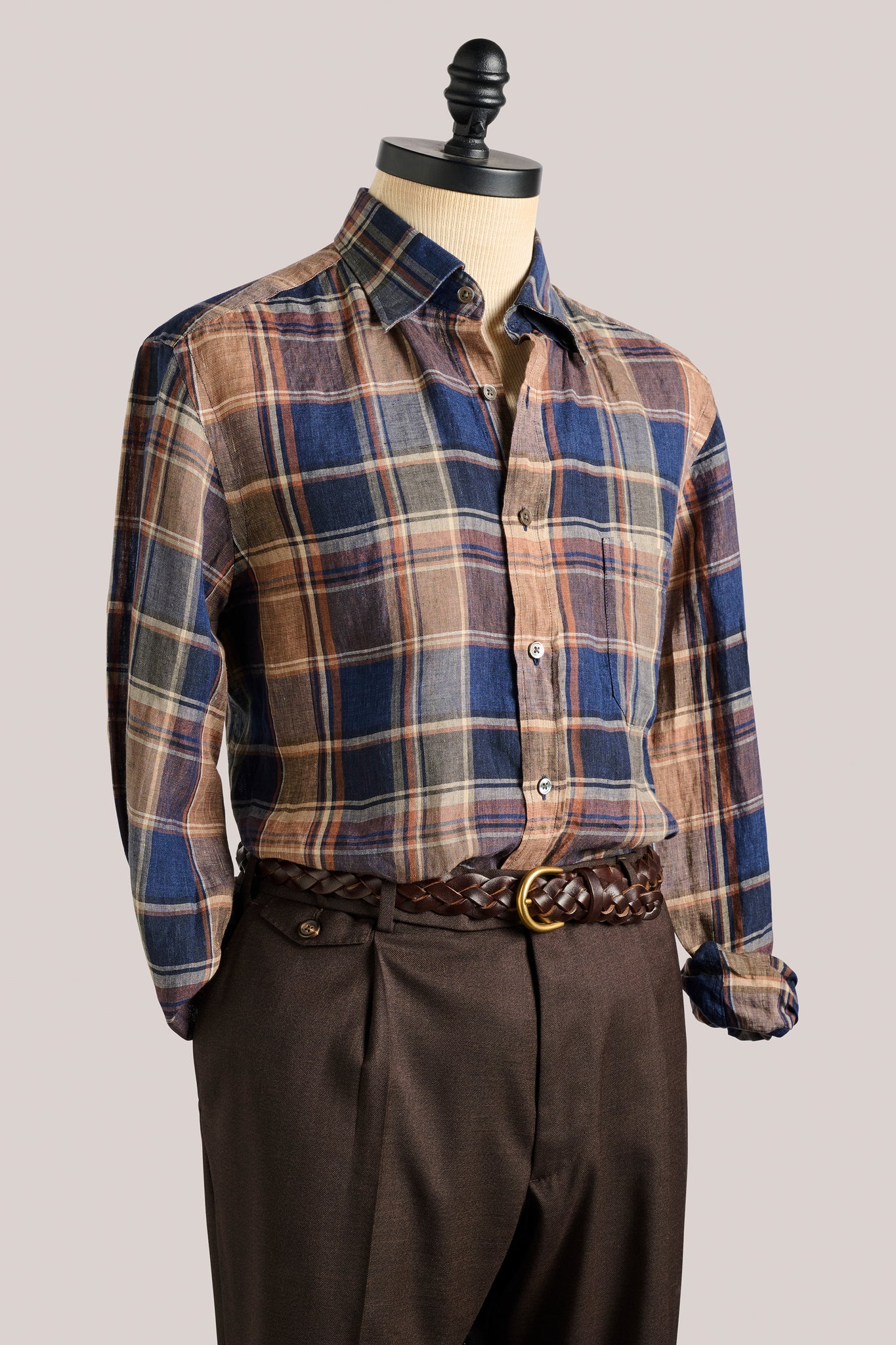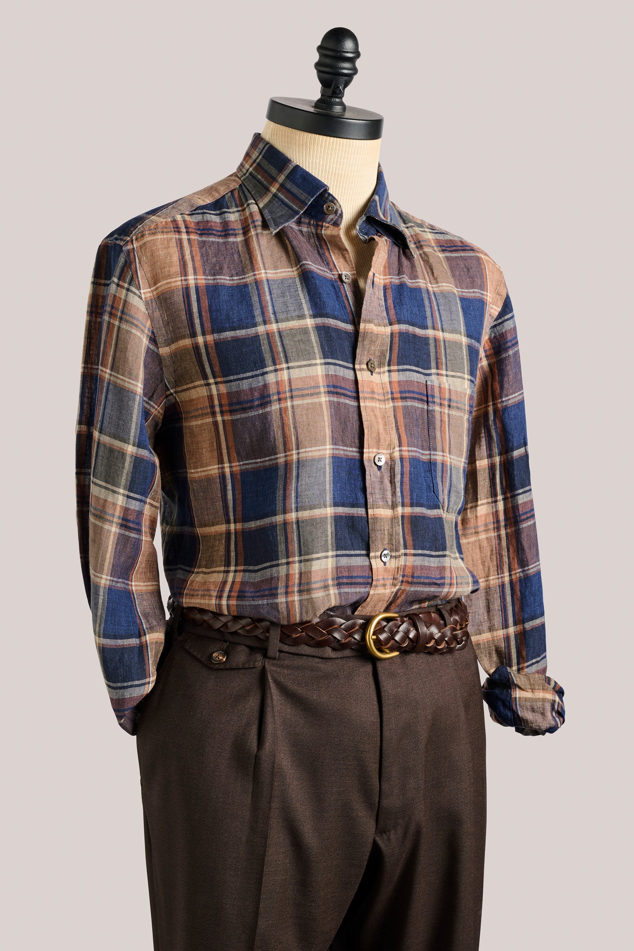 This shirt presents a relaxed yet elevated option for warm-weather dressing. Made from airy Italian linen and tailored with a spread collar, it features a warm check pattern that adds subtle character. Easy to style and effortless to wear, it lends itself to relaxed social days — from weekend gatherings to long lunches with friends — and is set to become a firm favourite all summer long.