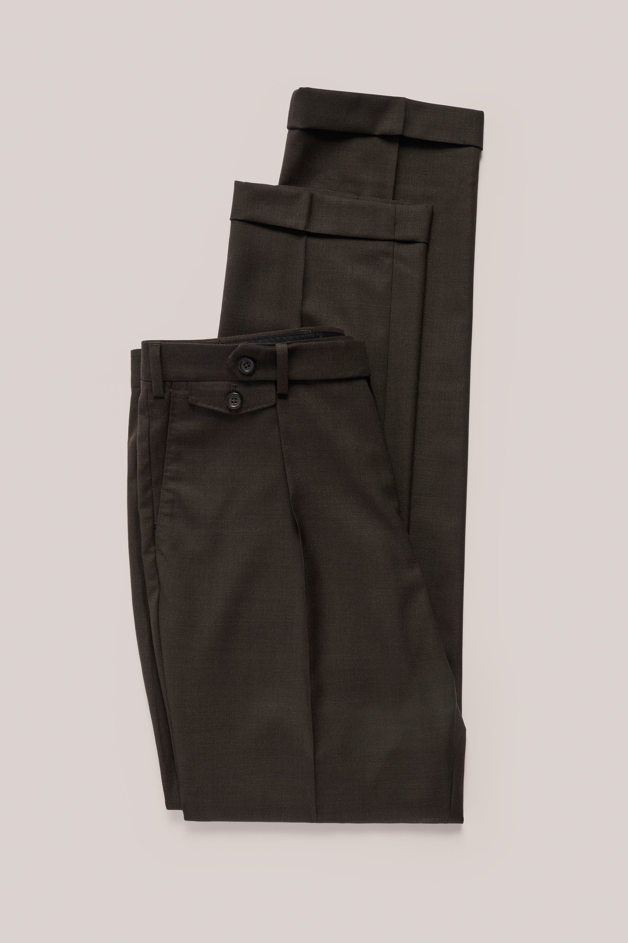 The Albert Trousers in chocolate are tailored to complete the Albert Blazer, cut from the same two-tone wool cloth that gives the suit its rich, versatile depth of colour.